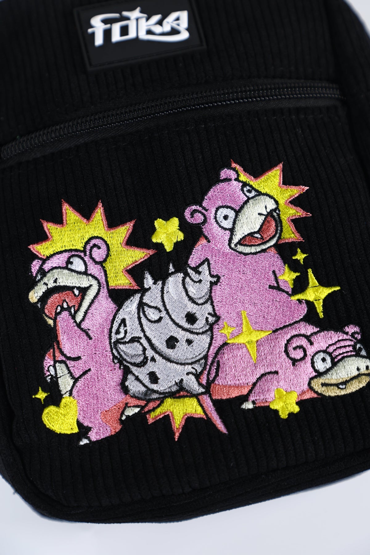 • Features: Embroidered design, branded rubber patch, black hardware zipper