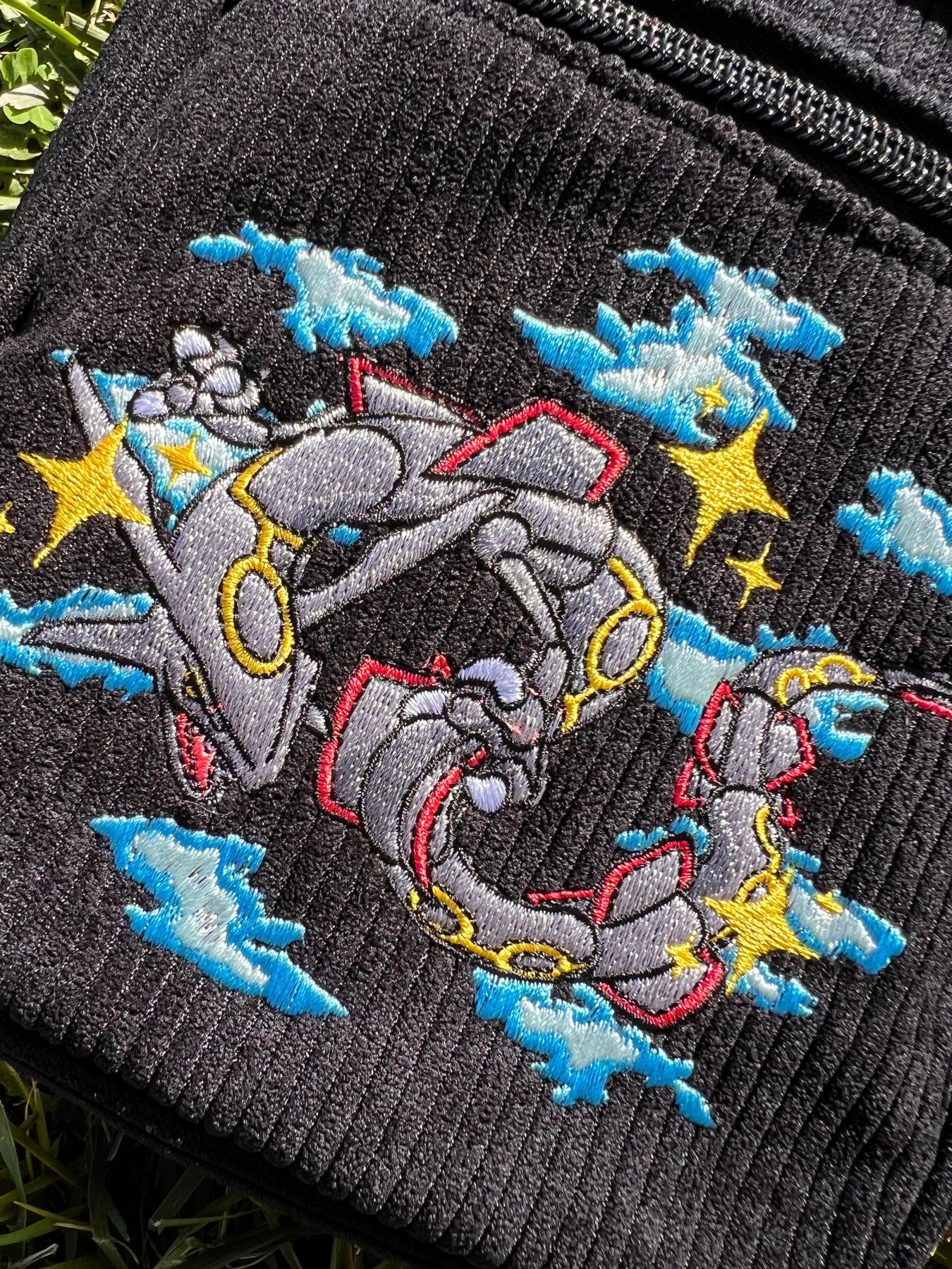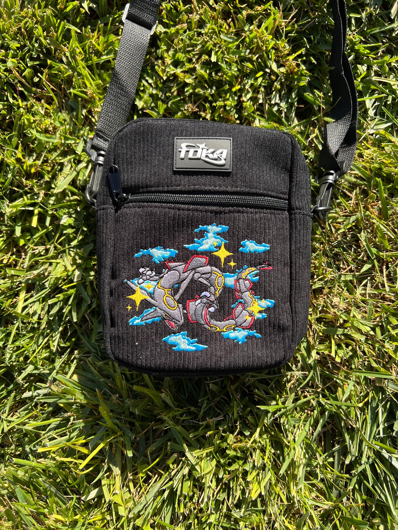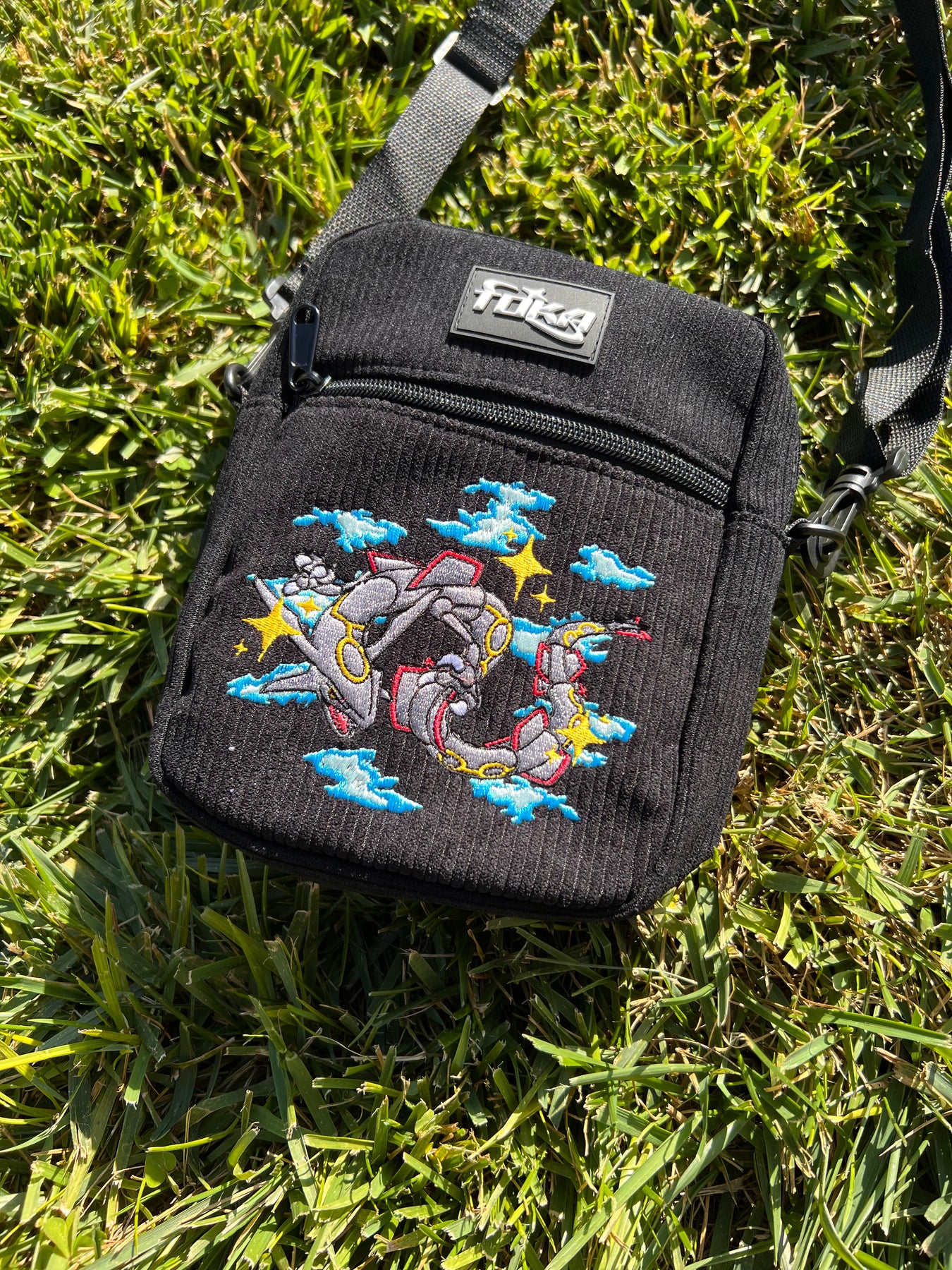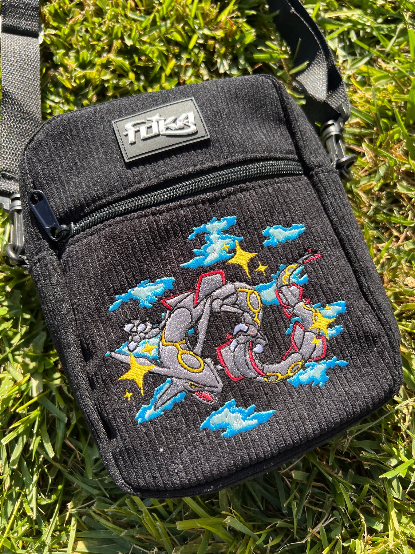 Features: Embroidered design, branded rubber patch, black hardware zipper