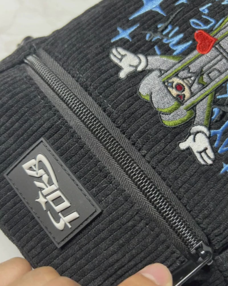 • Features: Embroidered design, branded rubber patch, black hardware zipper