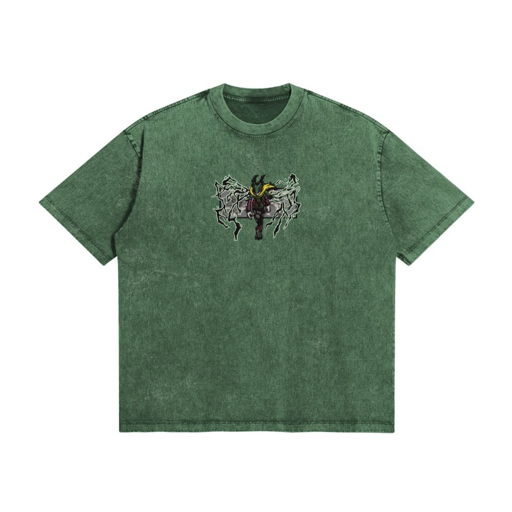A made-to-order embroidered vintage wash tee of your choice in a limited selection of carefully handpicked colors to match each design. Using poly-cotton blends and tri-blends made with our stitch-by-stitch embroidery method, each garment is created with quality attention to detail.