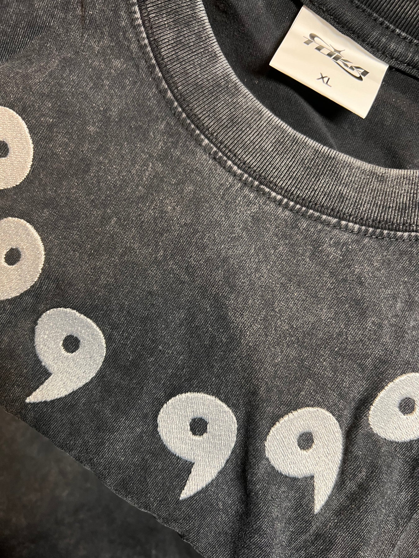 A made-to-order embroidered vintage wash tee. Using poly-cotton blends and tri-blends made with our stitch-by-stitch embroidery method, each garment is created with quality attention to detail.