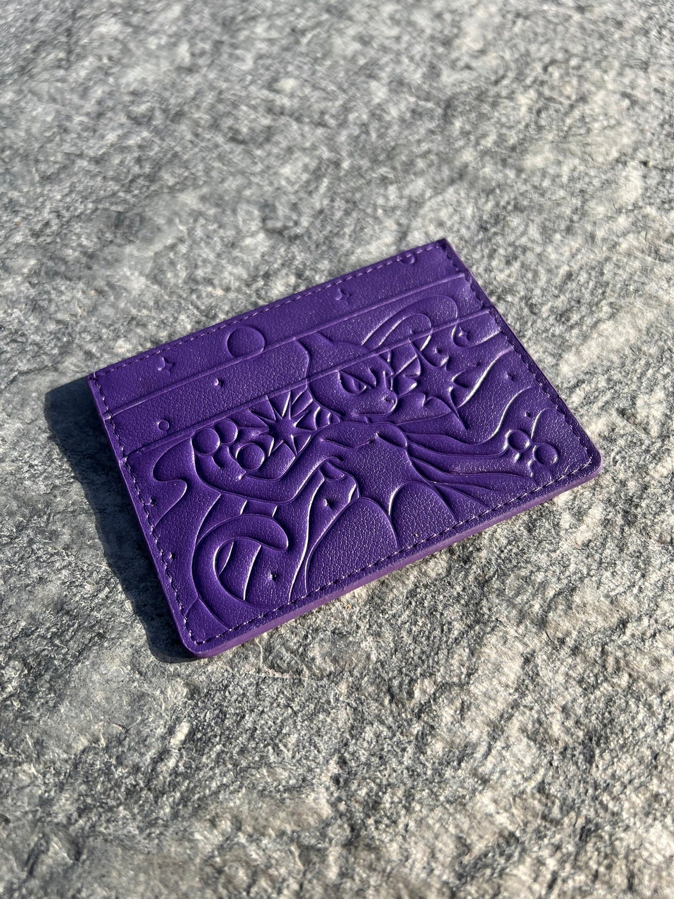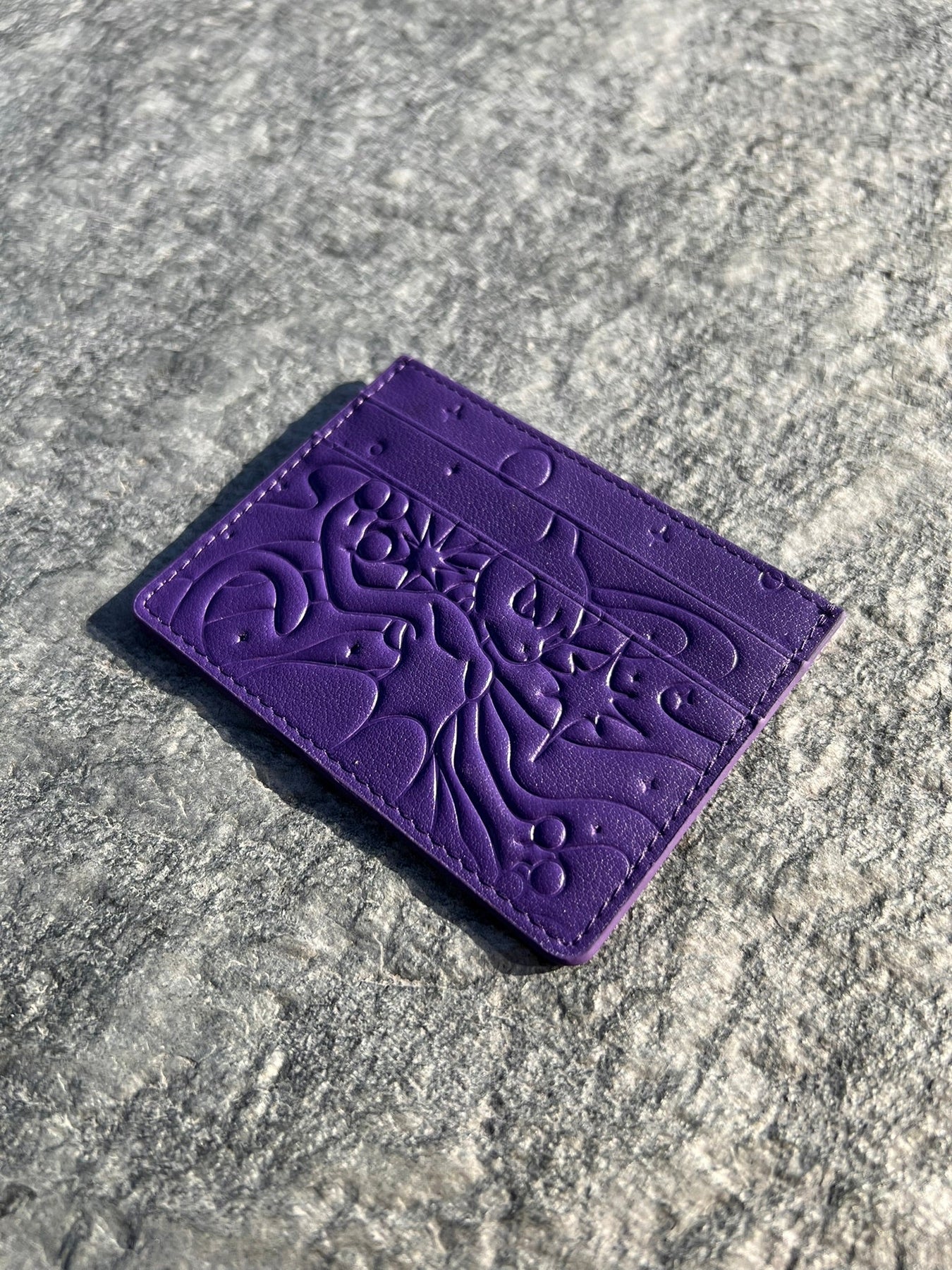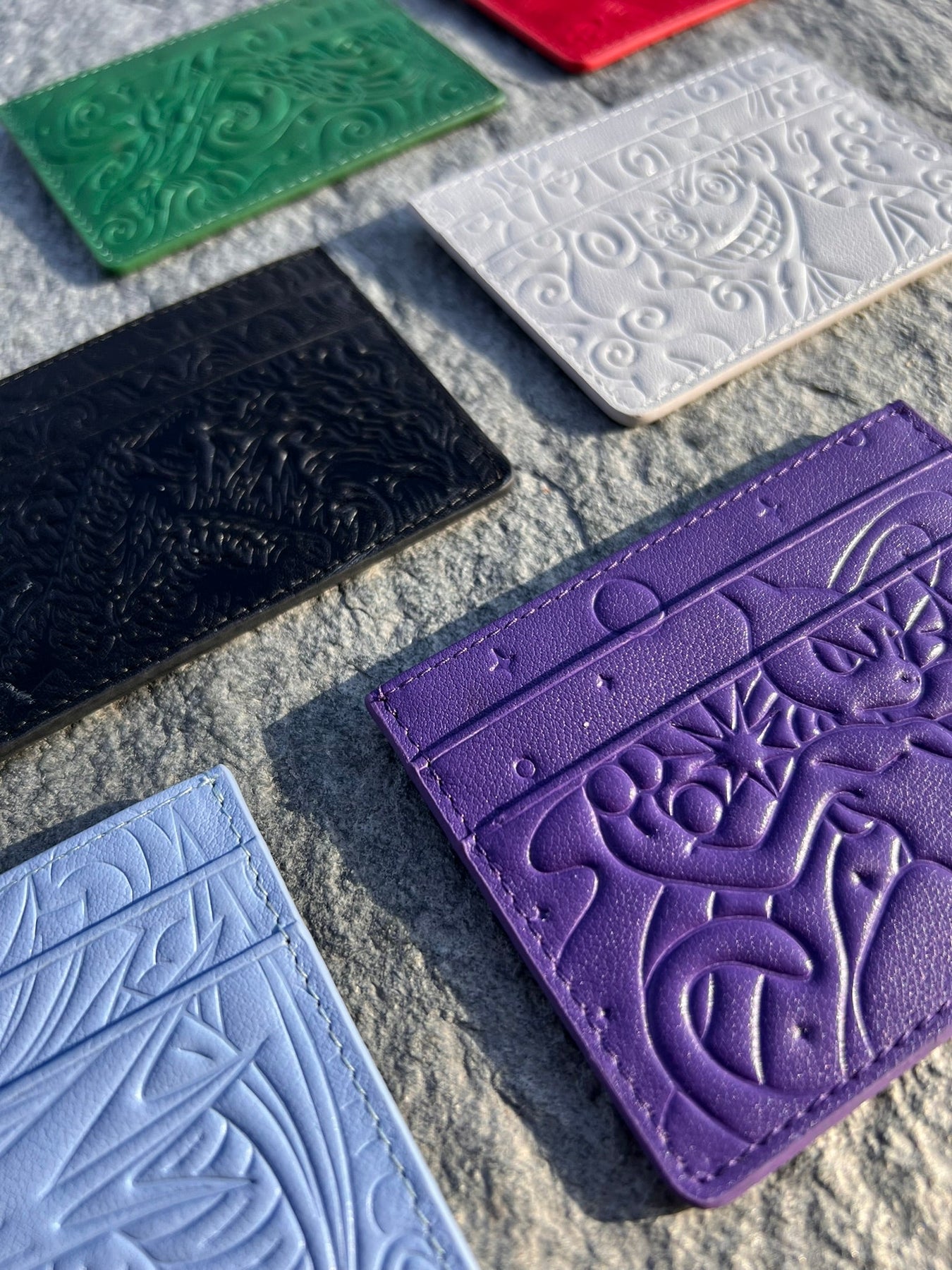 Slim, durable, and expressive — our premium card holders features a unique design embossed into genuine leather and combines utility and collectible art into one. This wallet features a total of 4 card slots and a middle larger slot in the center.